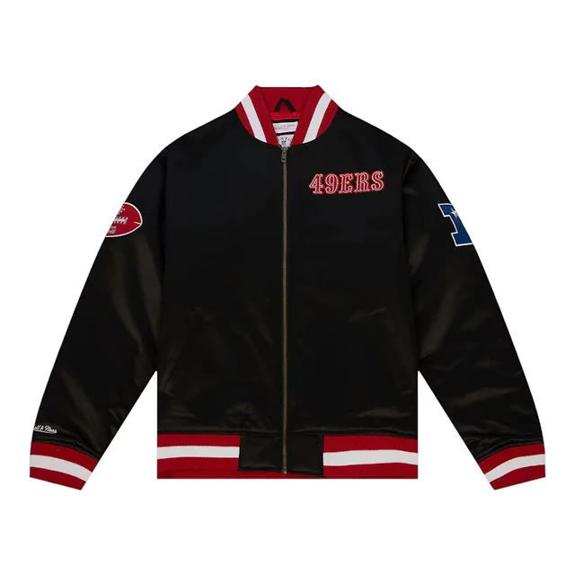 San Francisco 49ers Black "Faithful to the Bay" Heavyweight Mitchell & Ness Zip Up Satin Jacket