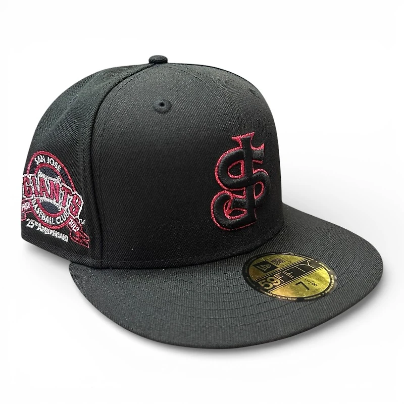 San Jose Giants Black and Red 25th Anniversary Patch Green UV MiLB New Era 59FIFTY Fitted Hat
