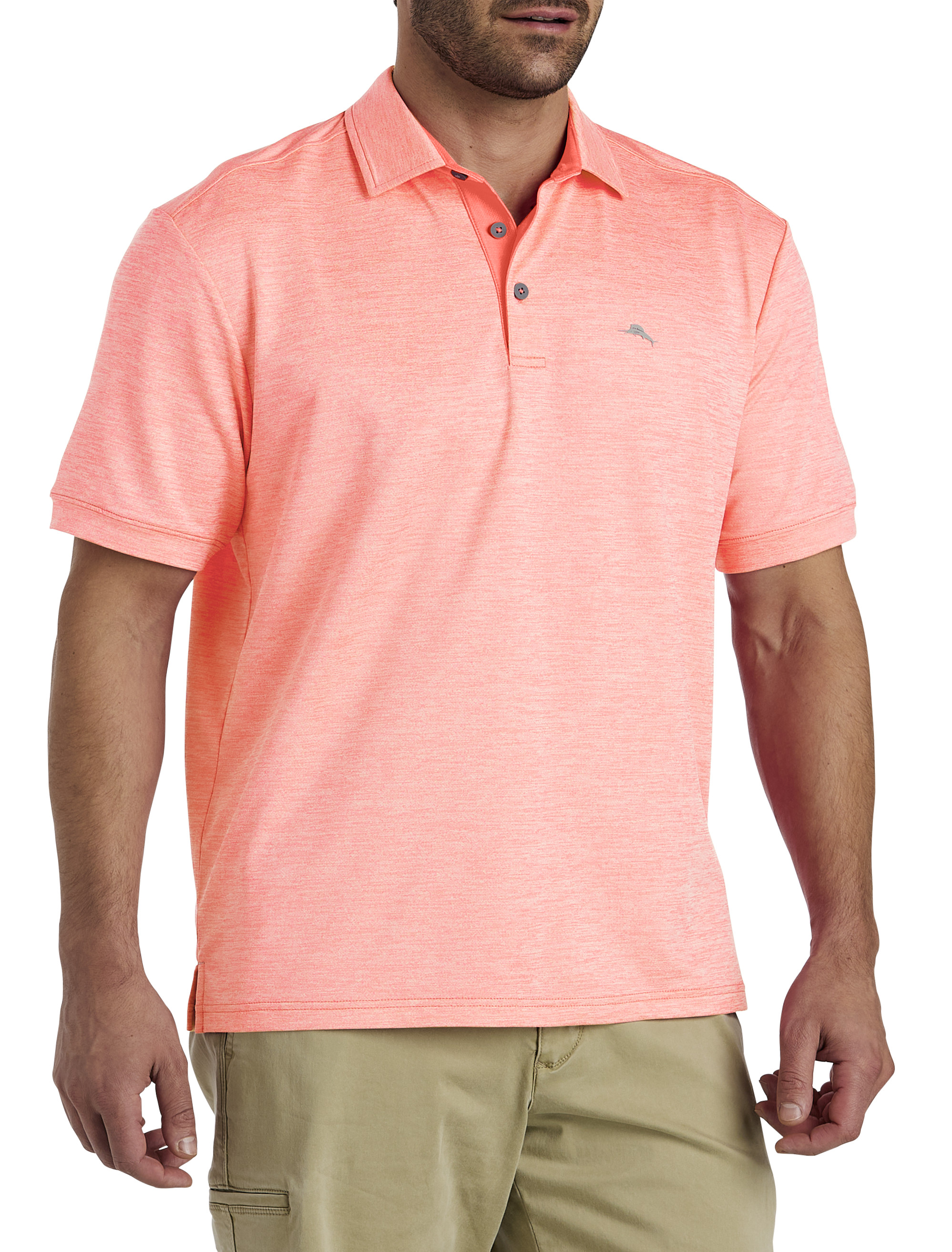 Stylish and soft to the touch—hit the links with this Tommy Bahama polo that takes you all the way to the 18th hole without breaking a sweat. Crafted in a polyester-stretch blend for a comfortable fit with the freedom to move, it's a must-have style that's sure to be a favorite whether you're on out on the green or out on the town.