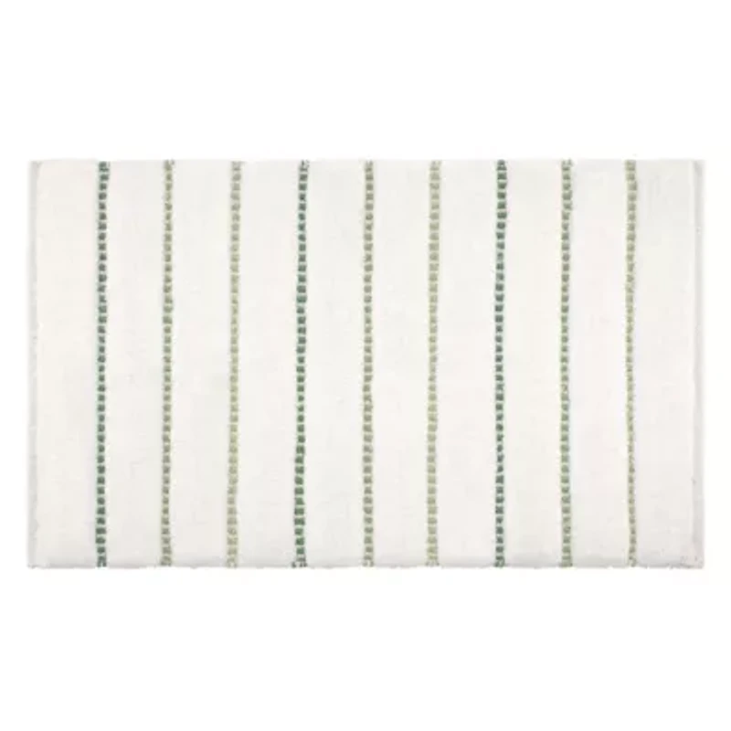 The Izod Sandbar Blue Rug features a super soft, plush, luxurious white base with alternating dark, medium and light blue stripes every 3". Tufted of 65% polyester (the base), 35% cotton (the stripes). Measures 20" x 32" with a latex, non-skid back for safety and comfort. Coordinating towels and other rug colors, and 24" x 60" double-vanity rug available. 1-piece Stripe Imported Product Specifications 20-in. x 32-in. Material & Care Polyester Machine washable, gentle cycle