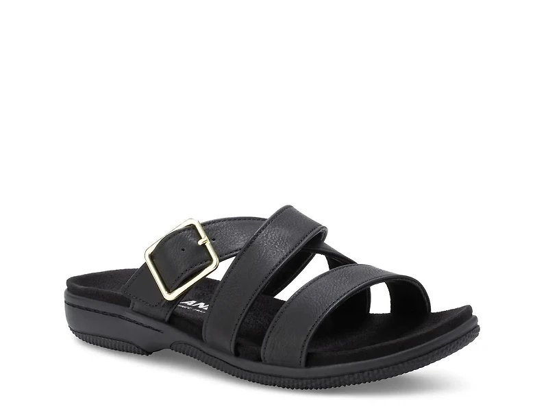 Discover the Eastland Sanibel sandal, a stylish slip-on with a buckle strap and round open toe. Featuring a foam footbed and traction sole, it offers comfort and ease that's perfect for casual wear.