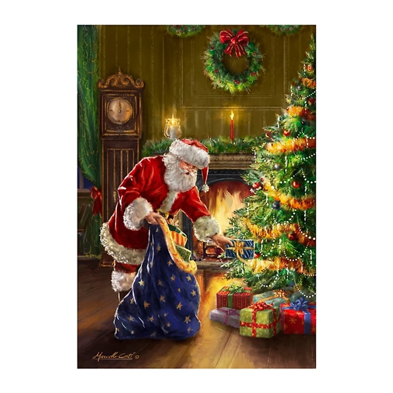 Get your home ready for the greatest night of the year with our Santa and Presents with Tree Canvas Art Print! This classic print will look lovely in your home. Art measures 40L x 1.35W x 60H in. Distinctively printed on stretched canvas Wrapped edges complete the look Features Santa placing presents under the tree Hues of brown, red, white, yellow, blue, and white Weight: 2.9 lbs. Comes ready for wall mount; no additional hanging hardware required Care: Dust with a soft, dry cloth. This item is available at Kirklands.com only, not available in stores. Please note: this item cannot be shipped to APO/FPO addresses.