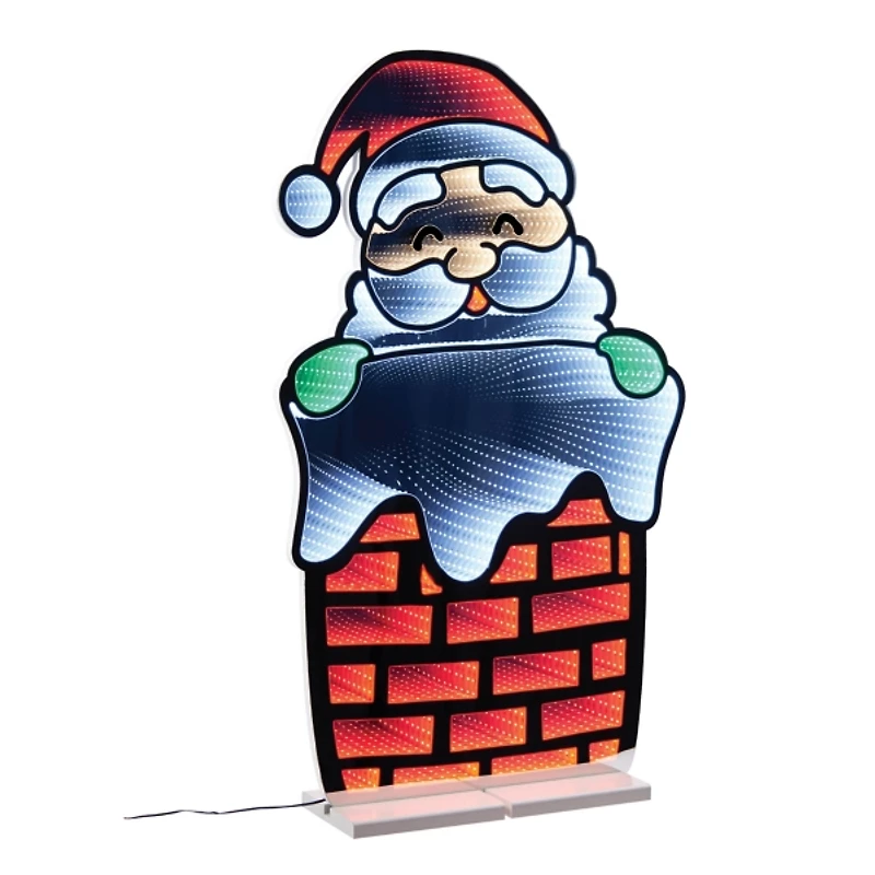 Capture the spirit of the season with this Santa in Chimney Ekkolight! Featuring a vibrant Santa figure popping out of a snow-topped brick chimney, this piece glows with bright LED lights that create a cozy and inviting ambiance. Decoration measures 22L x 4W x 35H in. Crafted of acrylic, PET plastic, and foam Features LED infinity lights Santa in chimney design Hues of red, white, and green UL plug included For both indoor or outdoor covered use Care: Wipe with a soft, dry cloth. This item is available at Kirklands.com only, not available in stores. Please note: this item cannot be shipped to APO/FPO addresses.