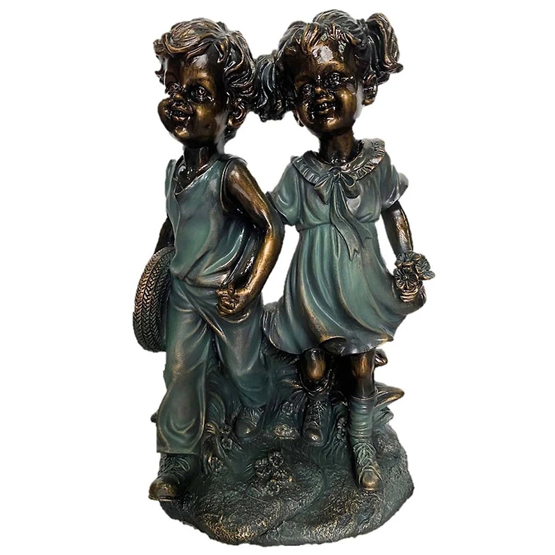 Hand in hand, the boy in his dusty dungarees, the girl in her frilly dress, they talk and sing as they make their way along the avenue, completely content in their own company.Details:Bronze colored14"ResinFor indoor use