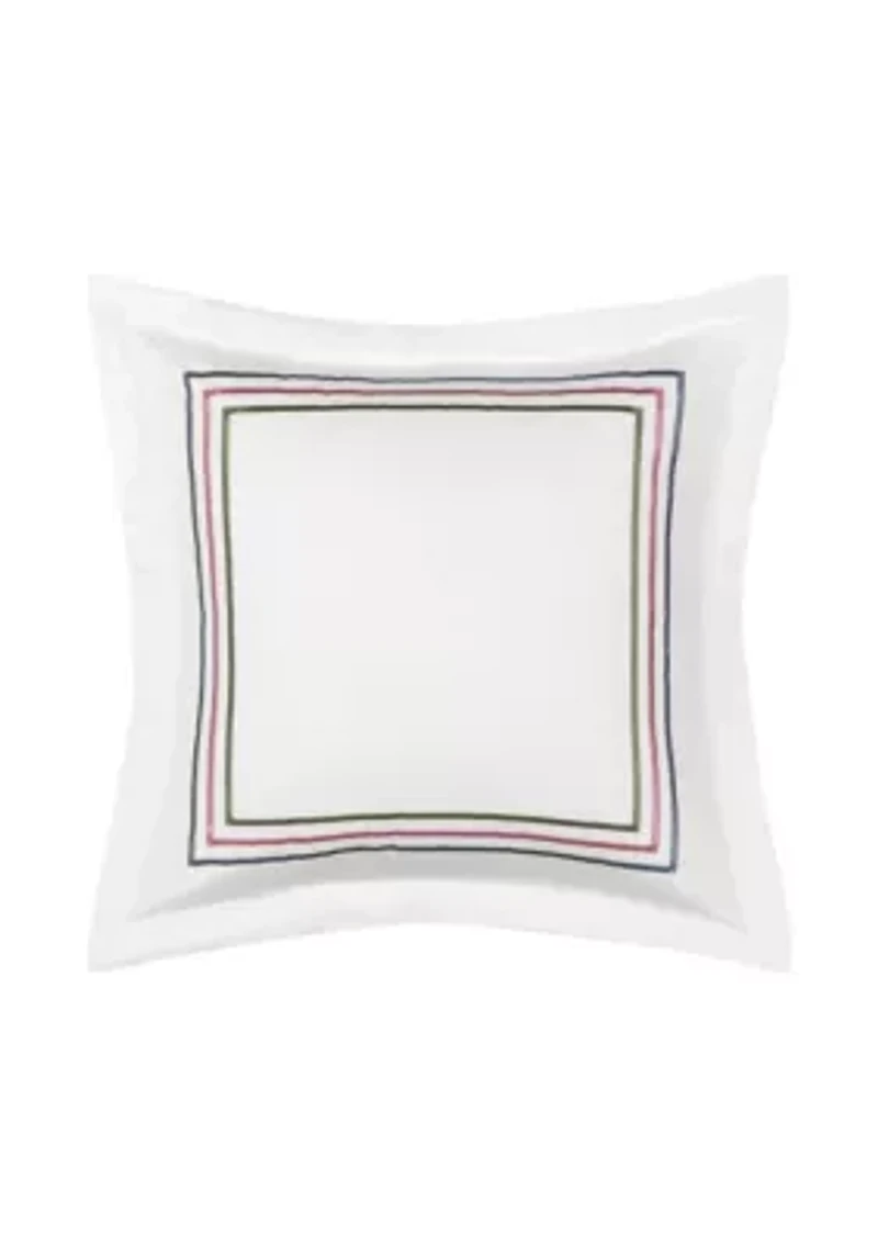 Refine your living space with the Savannah 18 Inch Square Pillow, an accent piece that blends a sleek border design with elegant charm. This ultra soft sateen cotton pillow features an embroidered border in shades of pink, blue, and green with a flange trim. Whether placed on your bed for coordinated charm, this throw pillow exudes tasteful cottage decor. • 18"x18" 1 piece(s) included CN Imported Product Specifications 18 -in. x 18 -in Material & Care Polyester Fill Cotton Machine washable, gentle cycle