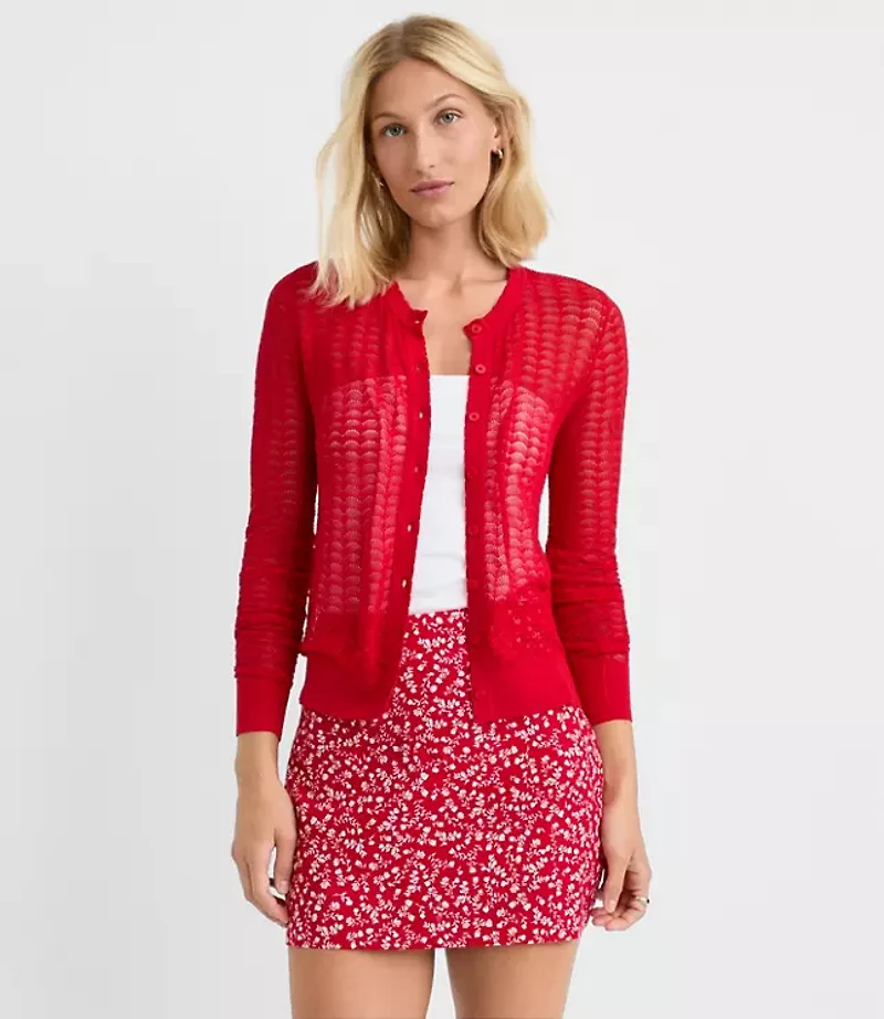 Sweetly scalloped - and punctuated in the prettiest pointelle - this soft knit cardigan is a covetably cute confection. Crew neck Long sleeves Button front, Bullet1: Sweater weight Lightweight, Bullet2: Please note this item is slightly sheer, add a cami beneath for more coverage, Hit: Hits at hip, Imported:, Length: 20 3/4"long, Fabrication: 89% Viscose 11 Nylon, Garment Care: Machine Washable Loft Scalloped Pointelle Cardigan Size 2XS Maple Cherry Women's by Loft Size Regular - 2XS Maple Cherry Women's Crew, Neck Sleeveless Cardigan Sweaters Wear To Work 89% Viscose 11% Nylon Machine Washable