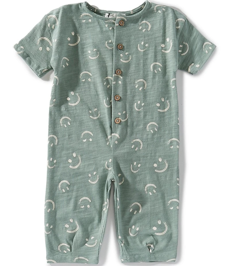 Scene&Heard Baby Boys Smiley Short Sleeve Button Front Shortall