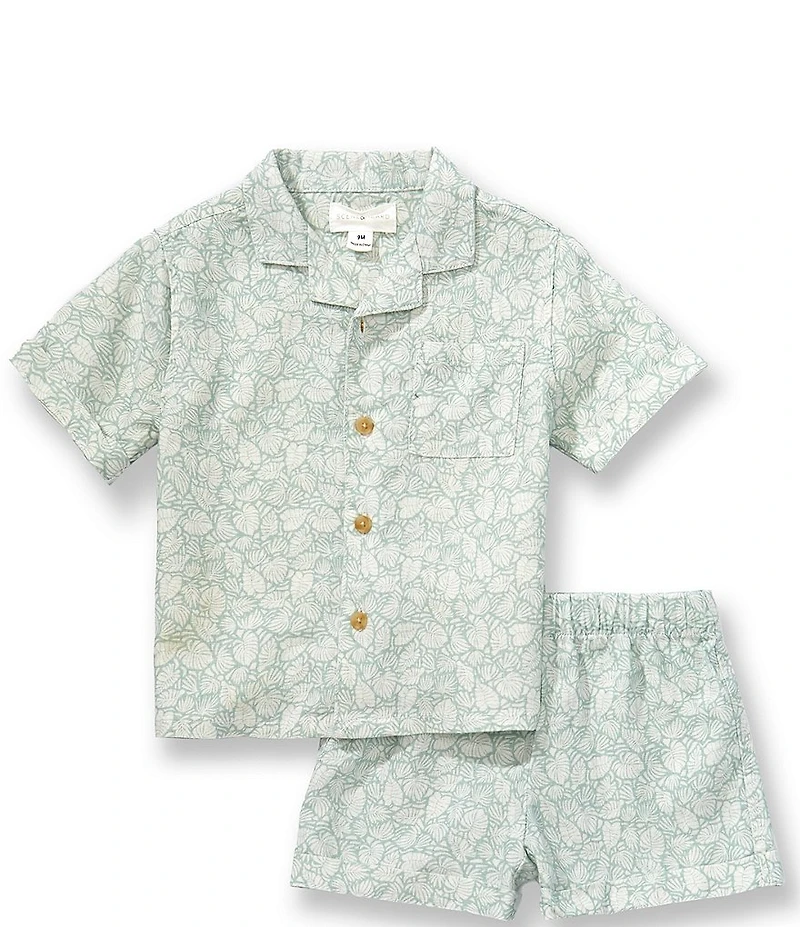 Scene&Heard Baby Boys Woven Leaf Print Short Sleeve Camp Shirt & Matching Pull-On Shorts Set