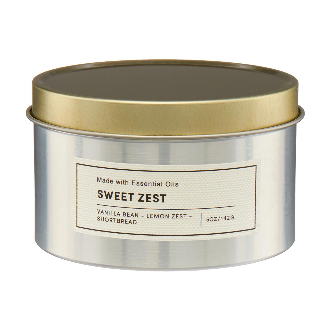 The Sweet Zest candle is housed in a sleek, silver tin with a stylish gold lid, adding a touch of elegance to your decor while preserving the fragrance when not in use. Made with essential oils, this candle offers a pure, long-lasting scent that is both soothing and invigorating.