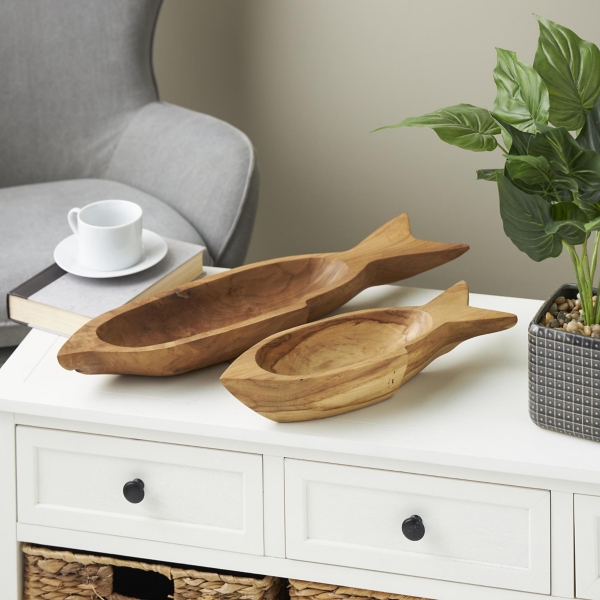 Teak Wood Carved Fish Trays, Set of 2