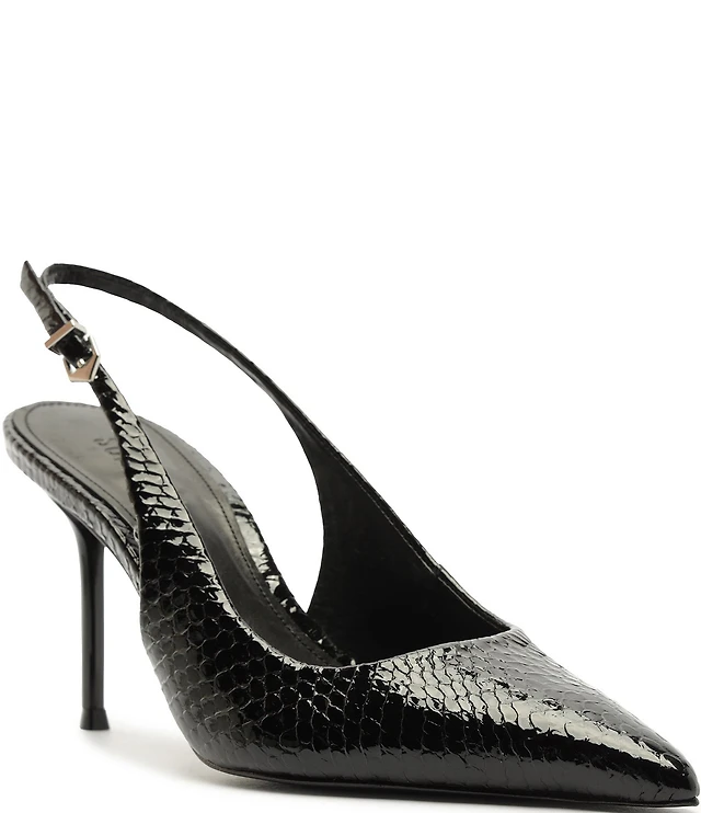Schutz Paola Snake Printed Leather Slingback Pointed Toe Dress Pumps