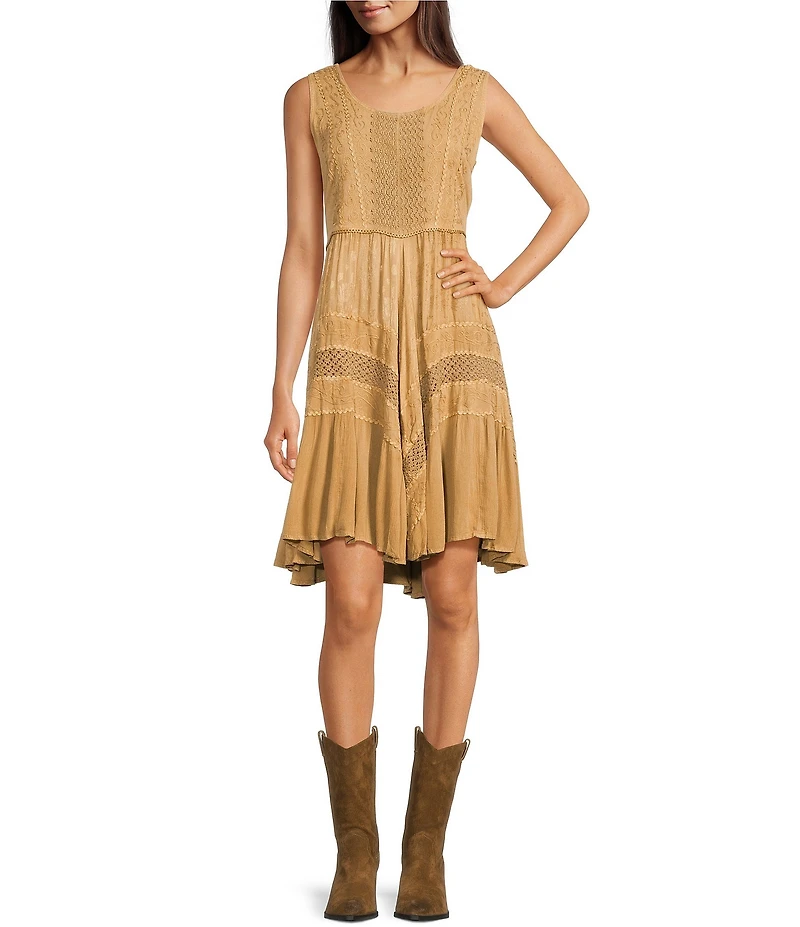 Scully Scoop Neck Sleeveless Embroidered Tank Dress