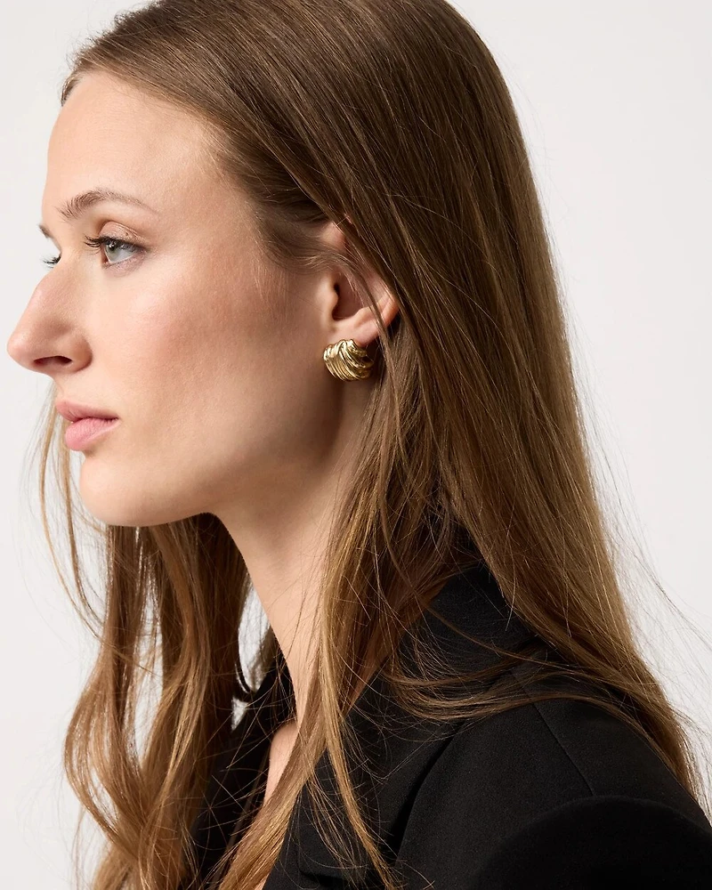 These stud earrings are re-inspired. This design features goldtone sculptural knots on post closures. Perfect for date night looks, complete the set with pieces from our Sculptural Knot Collection.