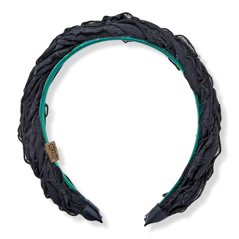 WICKED2 ELPHABA GATHERED HEADBAND BLK. Features: Scnci black Elphaba-inspired headband in gathered fabric. Deep black fabric is artfully gathered for a voluminous silhouette. Vivid green geometric print lines the inner band. Pairs fierce fashion with theatrical flair. Secure, lightweight design means all-day wear without sacrificing attitude. : :