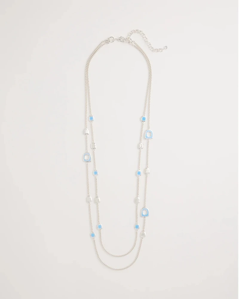 Debuting as part of our Sea Glass Collection, this must-look necklace will instantly charm you. Sea blue square pendants unite with double-strand layers of silver tones that are truly elegant.