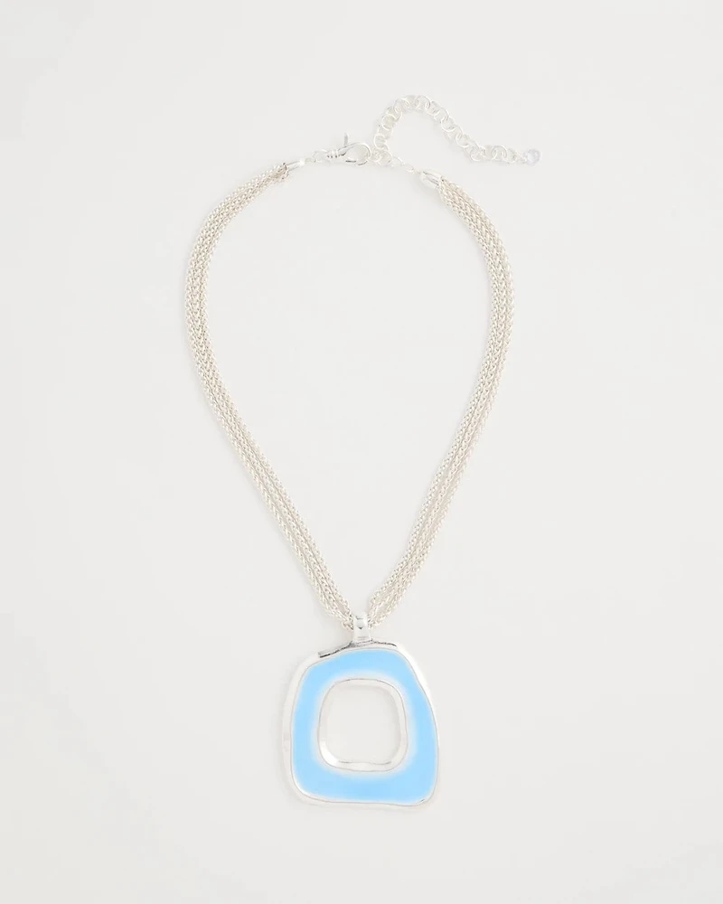 Debuting as part of our Sea Glass Collection, this must-look necklace will instantly charm you. A sea blue pendant unites with layers of silver tones that are truly elegant.