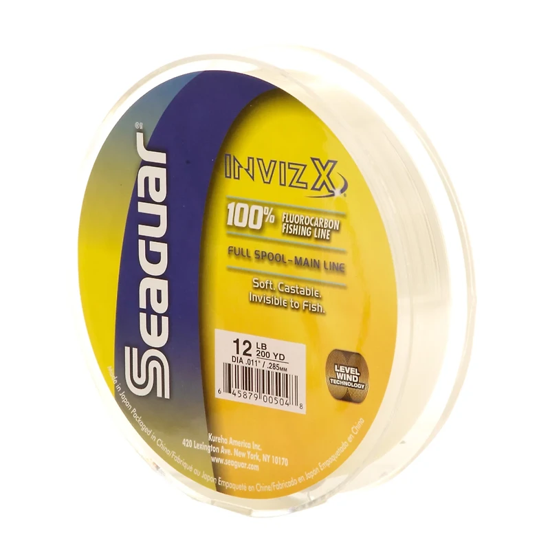 Enjoy the strong yet sensitive Seaguar® Invizx™ 12 lb. - 200 yards Fluorocarbon Fishing Line that offers advanced hook-setting power and knot strength. This soft, supple fishing line is versatile enough to be used for spinning or casting reels and is suitable in both freshwater and saltwater. Made from 100% Seaguar resins and produced using a proprietary extrusion process, this line is UV- and chemical resistant, nonabsorbent, high in density and impervious to cold conditions. The 100% fluorocarbon material makes this line virtually invisible to fish.