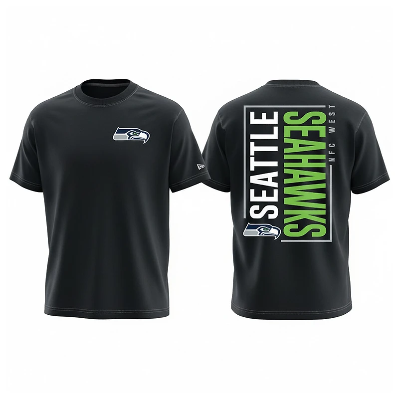 This Seattle Seahawks Black Pro Image Sports Excluisve NFL New Era T-Shirt is a great fashion piece by New Era. It is a short sleeve crewneck t-shirt with screen printed graphics. These were made exclusively for Pro Image Sports.
