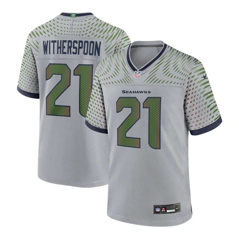 Gear up for game day with this Seattle Seahawks Devon Witherspoon Wolf Gray Rivalries Collection Nike Game Jersey. Perfect for passionate fans, this officially licensed jersey combines comfort, style, and team pride. These Rivalries jerseys are specially designed, community-inspired jerseys for select home games against division rivals.Nike NFL Game JerseysScreen printed name and numberStandard, relaxed fit made of 100% polyester Mesh side panels for ventilation to improve airflowNFL shield at the V-neck collarNike Swoosh logo on the sleeves