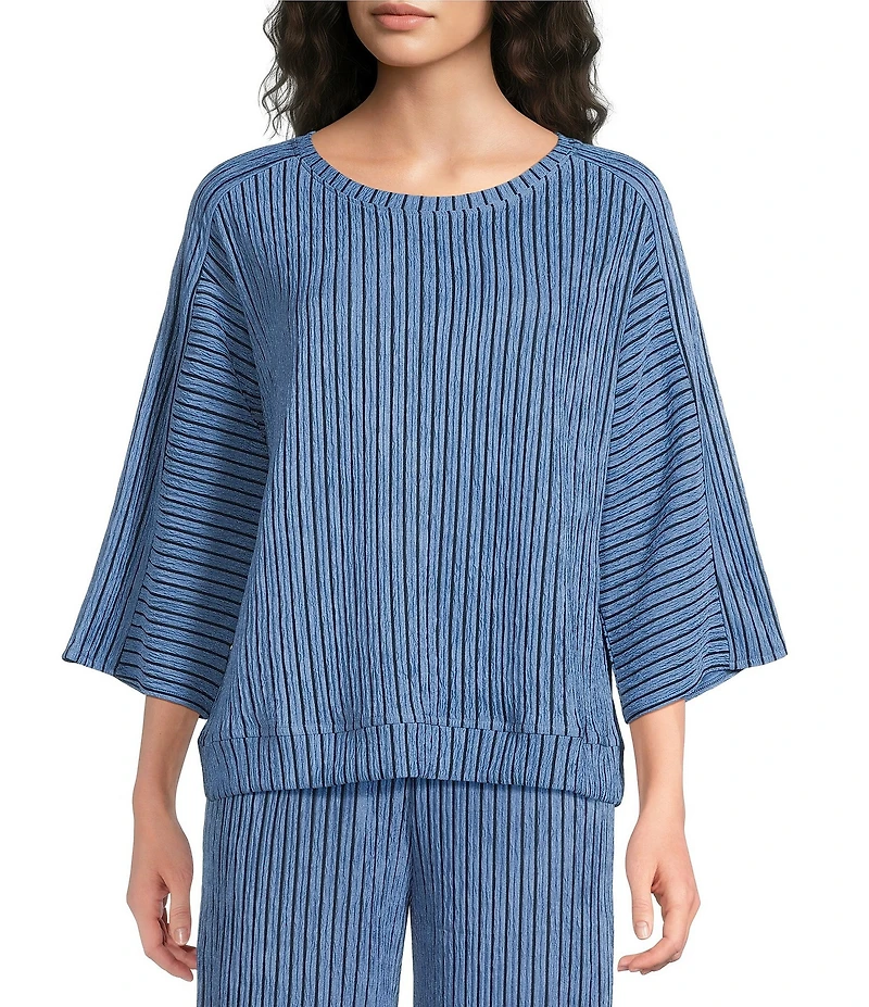 See And Be Seen Stripe Knit Boat Neck 3/4 Sleeve Coordinating Top