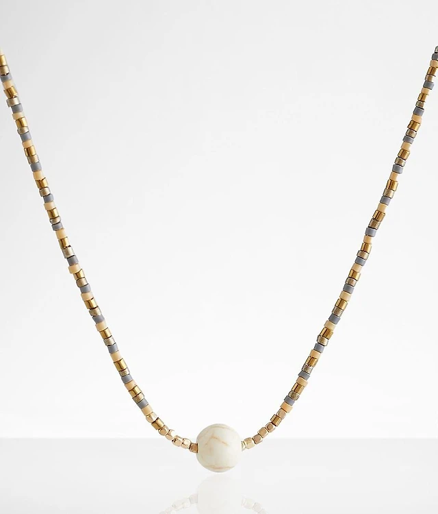 Gold-Tone Long Multirow Ivory Seed Bead Necklace