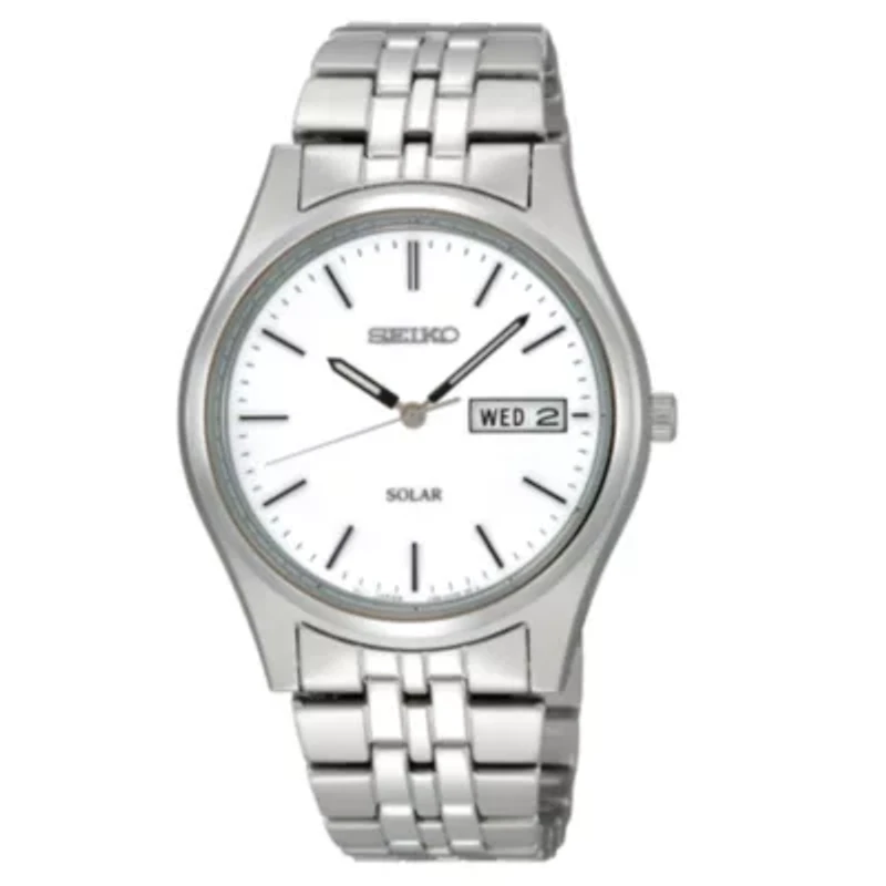 Seiko® Mens Silver-Tone Dial Stainless Steel Solar Watch SNE031