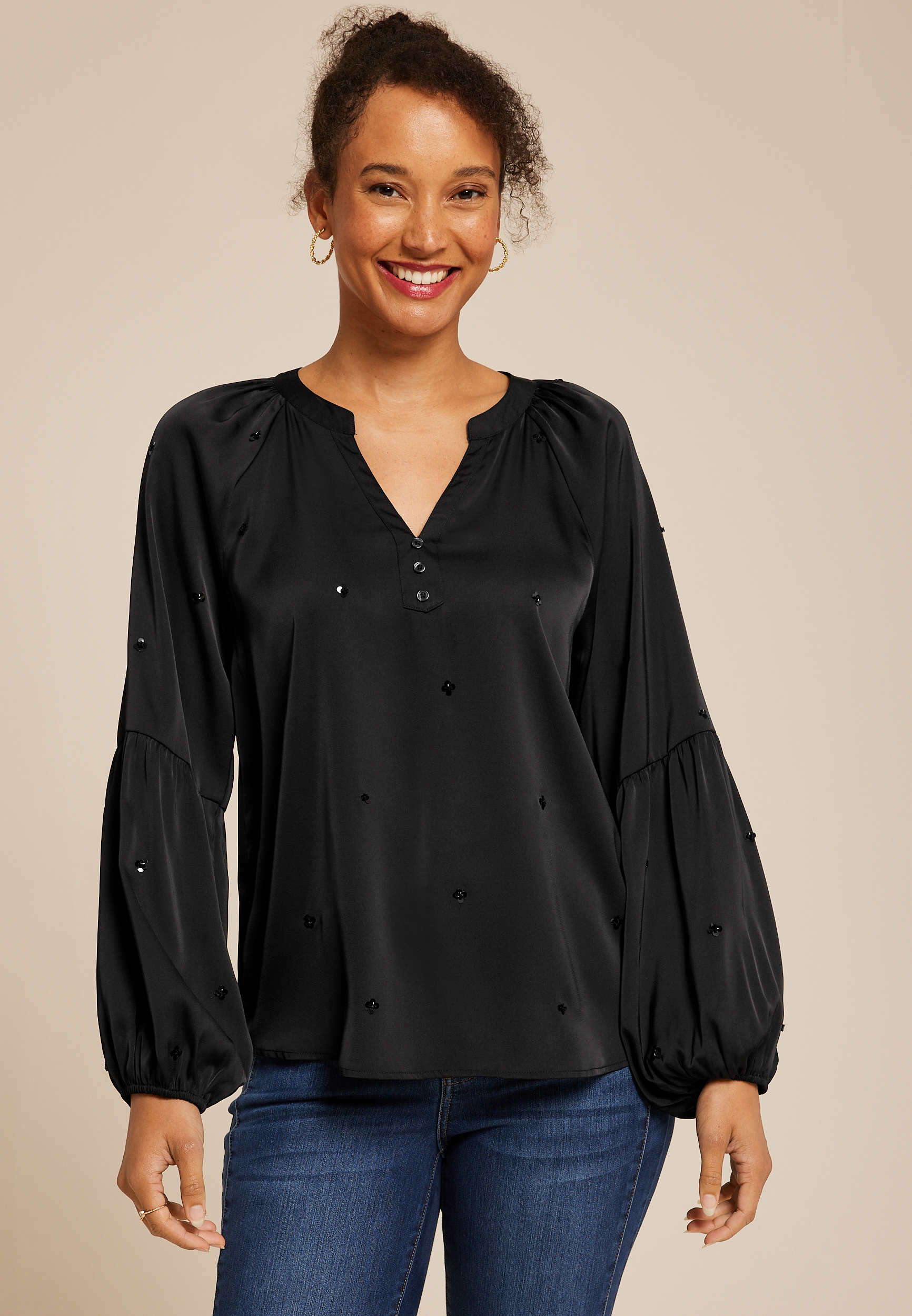 Sequin Embellished Balloon Sleeve Blouse in Chattanooga, TN