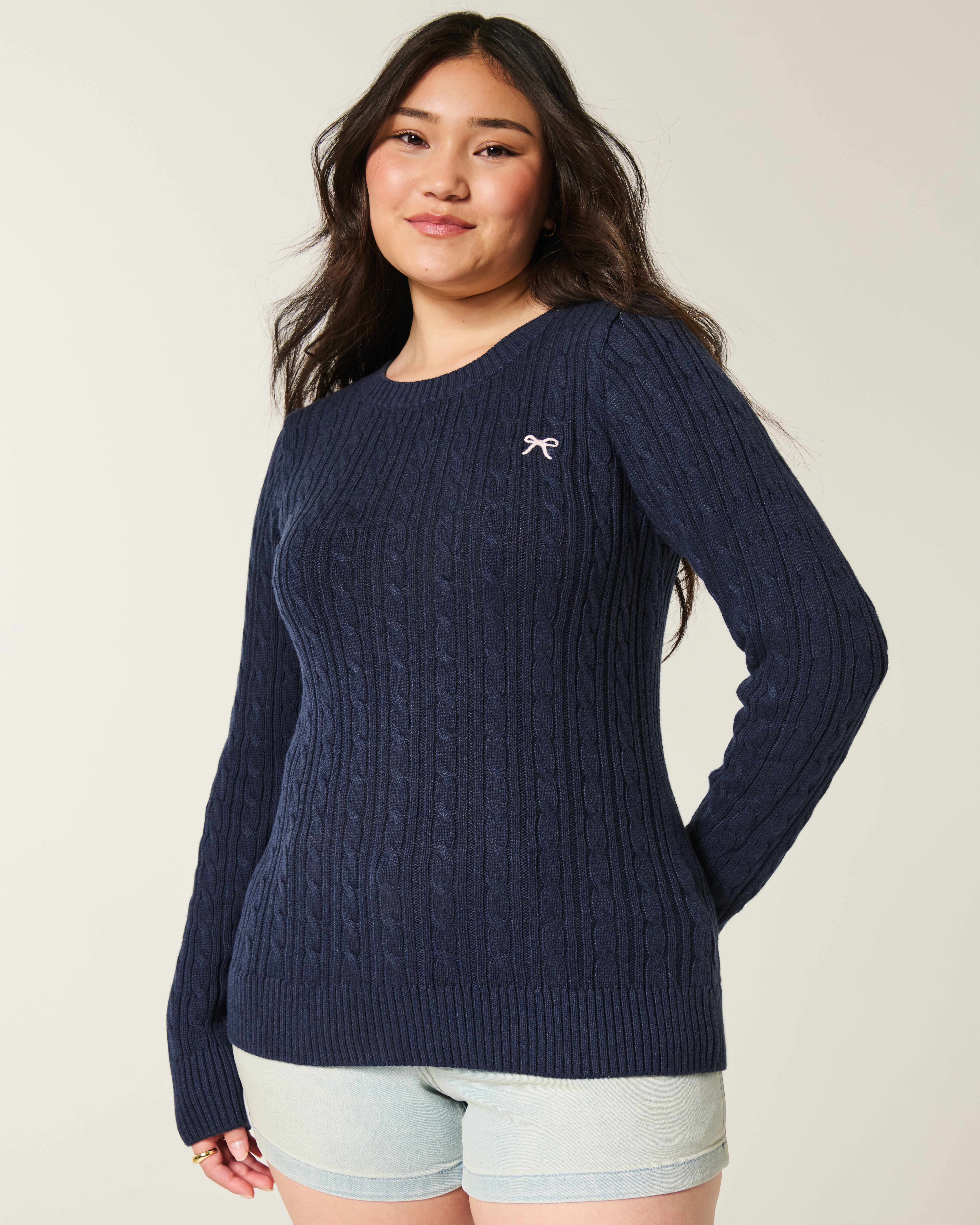 Cable-Knit Bow Crew Sweater