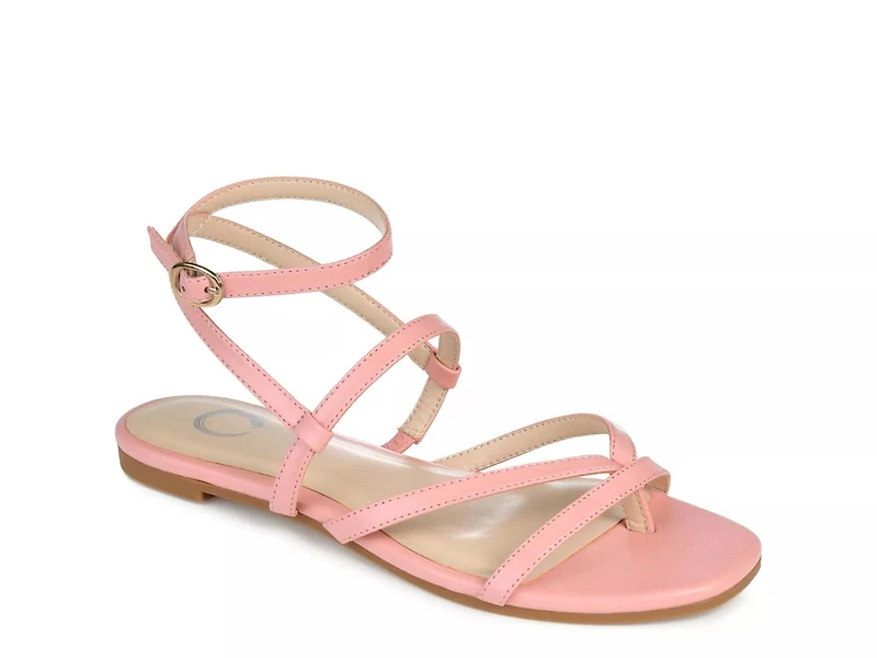 With barely-there slender straps and block heel, the Serissa flat sandal from Journee Collection is a favorite among minimalists. The padded footbed comfortably cushions your foot, while the wrap-around ankle strap with buckle ensures a secure fit.