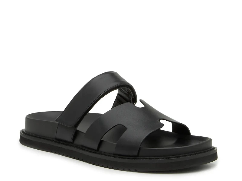 Bring some sharp touches to a warm weather look with the Steve Madden Shasta sandal. This slide pairs well with a number of summery fits, with a contoured footbed that supports your steps and a handy hook-and-loop strap that secures this pair.