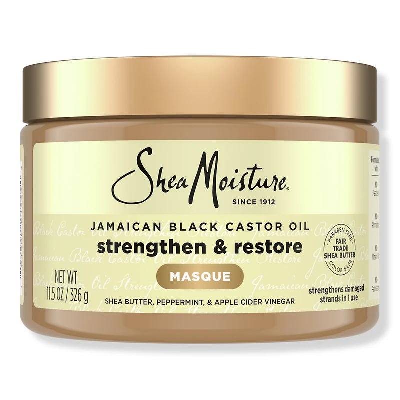 JBCO MASQUE 12.0OZ. Benefits: SheaMoisture Jamaican Black Castor Oil Strengthen and Restore Masque is a deep conditioning and hydrating hair masque that helps to strengthen and restore damaged or chemically processed hair. This hair mask and deep conditioner replenishes moisture and softens hair by supporting elasticity, reducing the appearance of breakage and shedding; it's best hair mask for curls. Deep conditioning hair mask is perfect for those who regularly color, straighten, perm or heat style their natural hair. Formulated with Jamaican Black Castor Oil and Shea Butter, this deep conditioner hair masque strengthens damaged hair and chemically processed hair. All SheaMoisture hair products, like this hair masque and deep conditioning hair treatment, are sustainably produced. This SheaMoisture hair mask is formulated with no silicones, no sulfates, no parabens, no phthalates, or petrolatum. : :