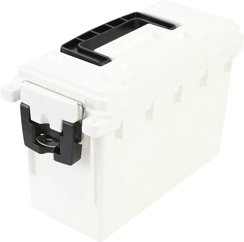 - Compression sealed lid and rubber gasket provide a tight seal against dust and water