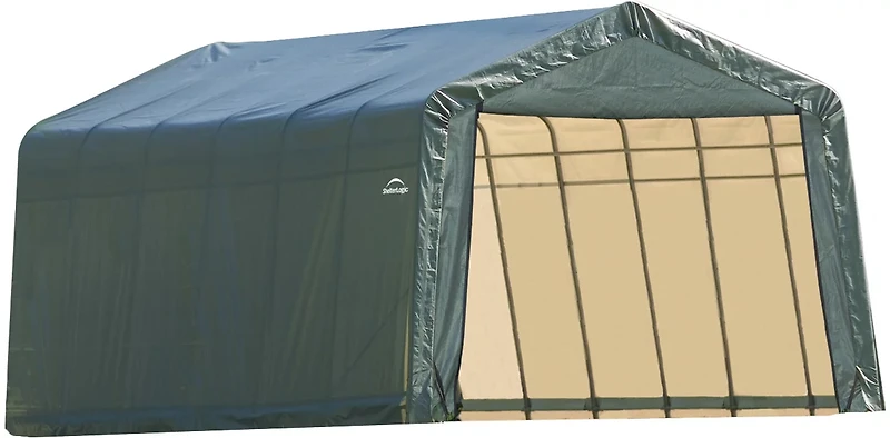 Great for storing vehicles, boats, tractors, large equipment or bulk supplies, the ShelterLogic 12' x 28' Peak Style Shelter is designed with a high-quality frame and fabric to withstand the elements. Easy to install.