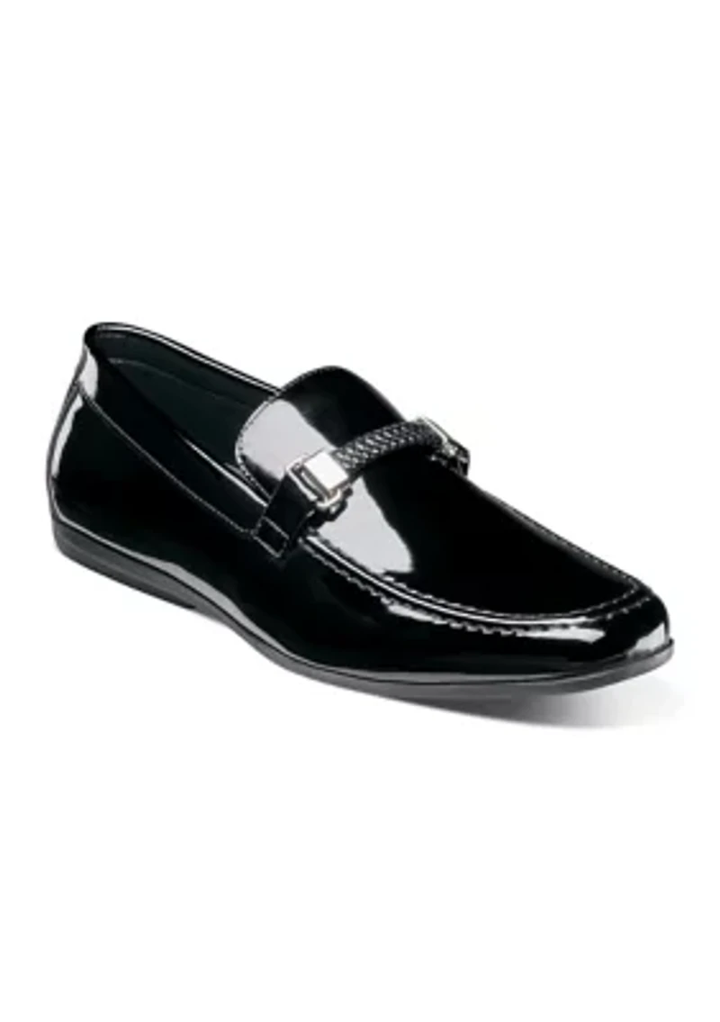 Step into effortless style with these sleek slip-on loafers from Stacy Adams. They feature a comfortable padded insole and a classic low heel, perfect for all-day wear. Crafted from durable vinyl with a patent finish, these dress shoes offer a sophisticated look without compromising on comfort. Slip-on Padded insole Comfort technology Imported Product Specifications Medium width Material Vinyl
