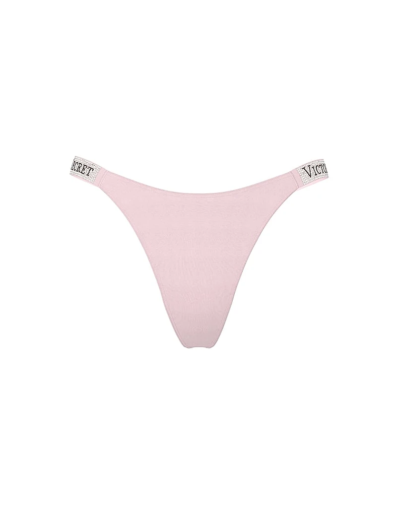 This barely there Thong gets dressed up this season with our updated logo shine straps for a dazzling finish.