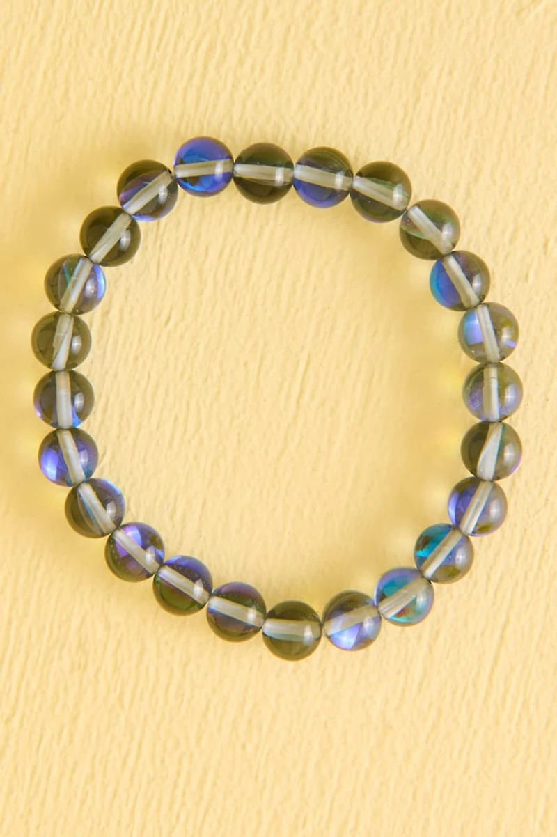 Shiny Grey Aura Bead Stretch Bracelet featuring iridescent grey beads on a comfortable stretch band—perfect for layering or adding a subtle, elegant touch.