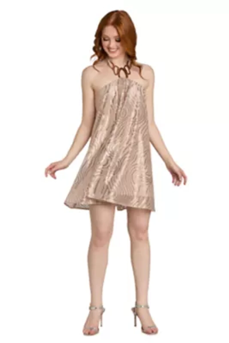 Short Metallic Foil Dress Halter Sleeveless Imported Product Specifications 39 inches Material & Care Polyester/Spandex Hand wash