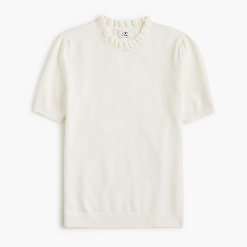 Short-sleeve cotton ruffleneck sweater for women - Find the best selection available in-stores and online at J.Crew Factory.