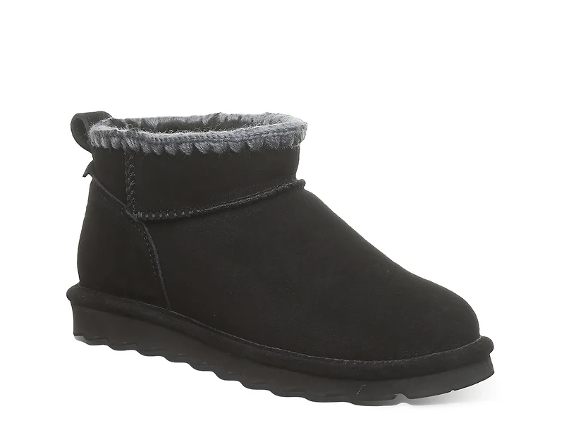 Enjoy every season, even the chilly ones! The Shorty Crochet bootie from Bearpaw is designed to keep you warm thanks to the wool-blend lining. Treated with BearCoat Rain & Stain Repellent that is designed to keep you dry, even when you encoutner rain, slush, or snow. Complete with a woven detail along the edge for a cozy touch.