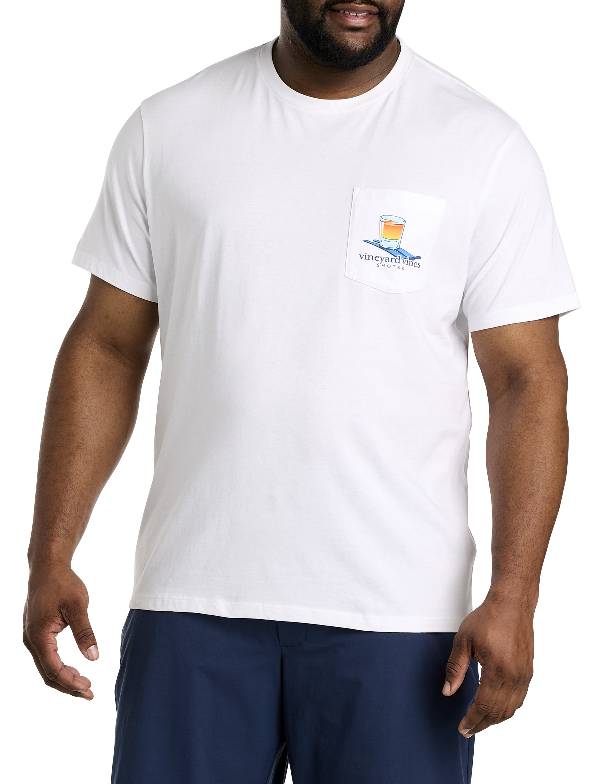 Line them up: it's party time! Fans of vineyard vines will love this soft, 100% cotton T-shirt. It features a screenprinted image of a flight of shots on the backside along with the signature logo and a smaller graphic at the left chest pocket. Designed with proper proportions for Big and Tall guys, the relaxed fit will make it a favorite for everyday comfort. Pair it with shorts, jeans or swim trunks for a complete look.