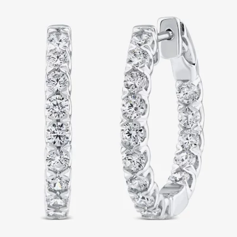 (Si2/ H) Womens 2 CT. T.W. Lab Grown White Diamond 10K White Gold 22.5mm Hoop Earrings