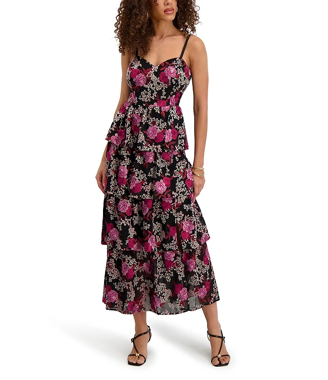 Embroidered Floral Tiered Midi Dress