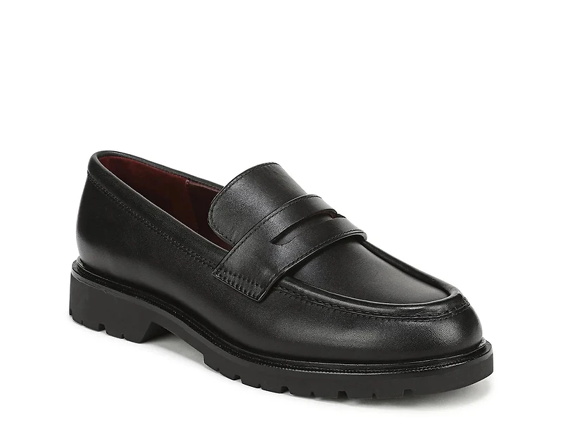 Sharpen your look with the Siena penny loafer by Vince. This loafer blends a sleek silhouette with a sturdy lug sole and a modest block heel, making it an ideal choice for polished, professional settings. Designed to bring a confident, refined edge to your ensemble, it offers both style and subtle comfort for the modern woman.