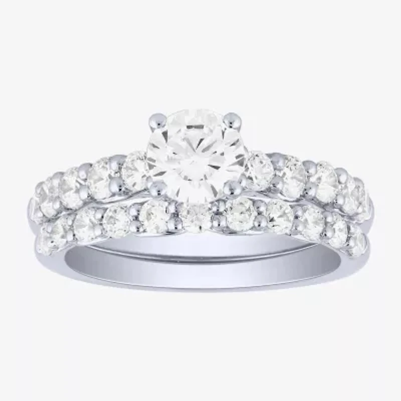 Signature By Modern Bride (H-I / I1) Womens 2 CT. T.W. Lab Grown White Diamond 10K Gold Side Stone Bridal Set