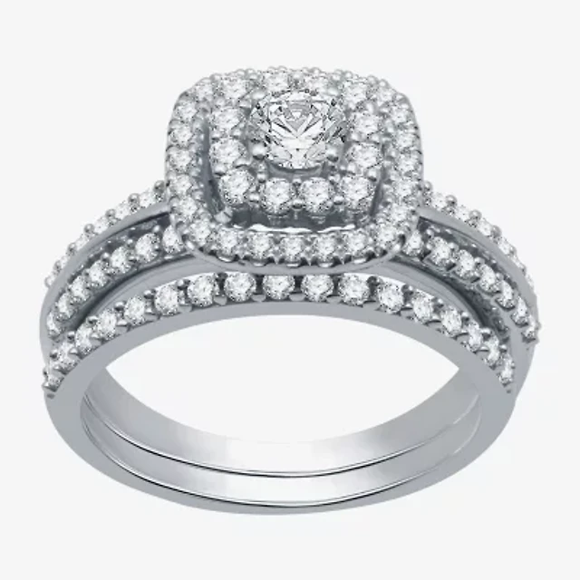 Signature By Modern Bride Womens 1 CT. T.W. Natural White Diamond 10K White Gold Pear Side Stone Halo Bridal Set