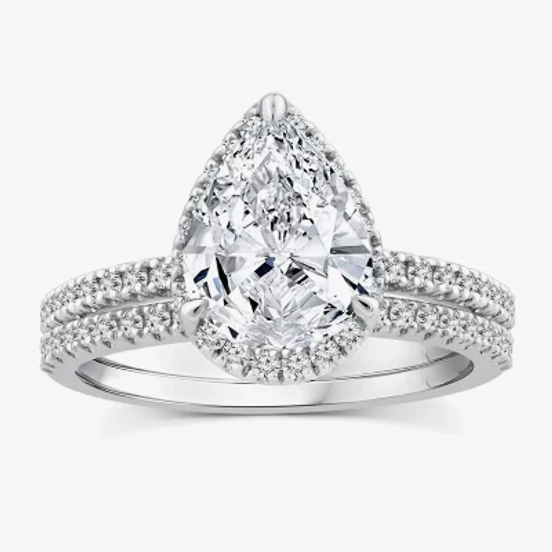 Signature By Modern Bride Womens 2 CT. T.W. Lab Grown White Diamond 10K or 14K Gold Pear Side Stone Bridal Set