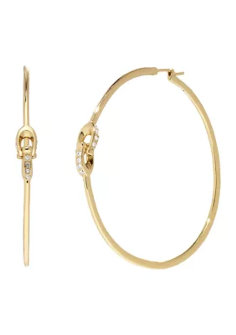 Sleek large-sized hoop earrings featuring interlocked signature sculpted C links adorned with minimal pave. These everyday earrings have a click-top closure. Made from polished gold-tone brass metal and glass stones. Includes COACH pouch. Click top closure Polished finish Imported Product Specifications 2.25" x 0.25" x 2.25" D Material & Care Brass Gold-tone metal Wipe clean