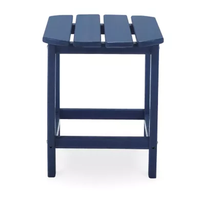 Add cottage-quaint charm to your outdoor oasis with this outdoor end table in blue. Made of mega tuff™ high-density polyethylene material, its sure to weather the seasons beautifully. Designed to shed rainwater, the tables slatted top with gently rounded corners provides exceptional form and function. With a variety of styles and materials, accent tables can provide storage in a living room or give guests a spot to rest their drinks. They can add subtle drama to your decor by presenting a place for artwork, a lamp or a plant. We have a wide selection of coffee tables, console tables and occasional tables, from rustic farmhouse designs to modern openwork styles. They come in a multitude of sizes, too, so you will find one that fits just where you need it.