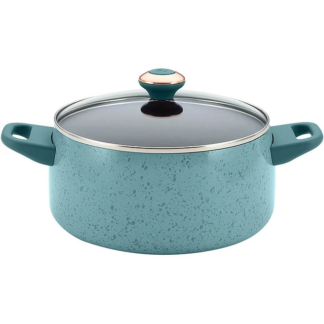 Signature Nonstick Cookware Pots and Pans Set, 15 Piece, Aqua Speckle
