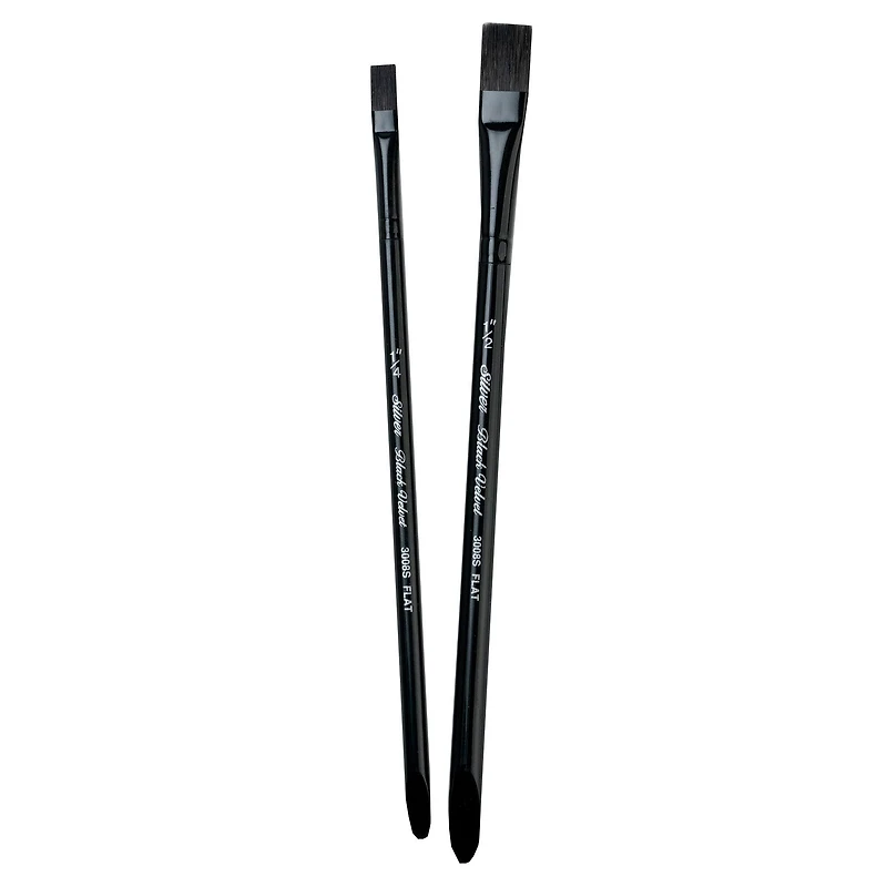 Silver Brush Black Velvet brushes were created for watercolor artists and skilled hobbyists. Each brush is soft enough to add color without disturbing previous layers, yet firm enough to lift color when needed. These professional watercolor brushes are expertly crafted with a luxurious blend of squirrel hair and black synthetic fiber. Each brush features a short handle, distinctively finished with black lacquer and a band of silver. This set of watercolor brushes has 2 different Square Wash brushes in 1/4" and 1/2". The short handles are ideal for tabletop creations. Black Velvet brushes are best paired with watercolor paints and are designed to hold the right amount of color, giving you more time to focus on your masterpiece. Watch your ethereal creations come to life with Silver Brush premium-quality tools. Silver Brush Ltd is owned by a fourth-generation art materials family, proud of its rich heritage in bringing quality supplies to artists and craftsmen throughout the world. We delight in challenging the status quo and putting our experience to work for you—because Art is for Everyone! Details:Black VelvetIncludes assorted sizesBlend of squirrel hairBlack synthetic fiberFinished with black lacquerWatercolor painting and tabletop useContents:Flat brush (size 0.25) Flat brush (size 0.5)